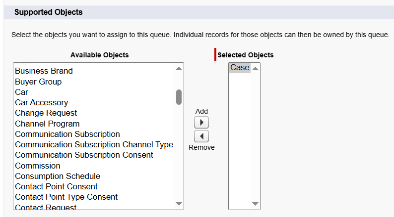 This step is important. If the object is not selected here, you will not be able to assign that object’s records to the Queue.