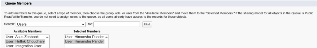 Only the users added here will be able to view and take ownership of records assigned to the Queue.