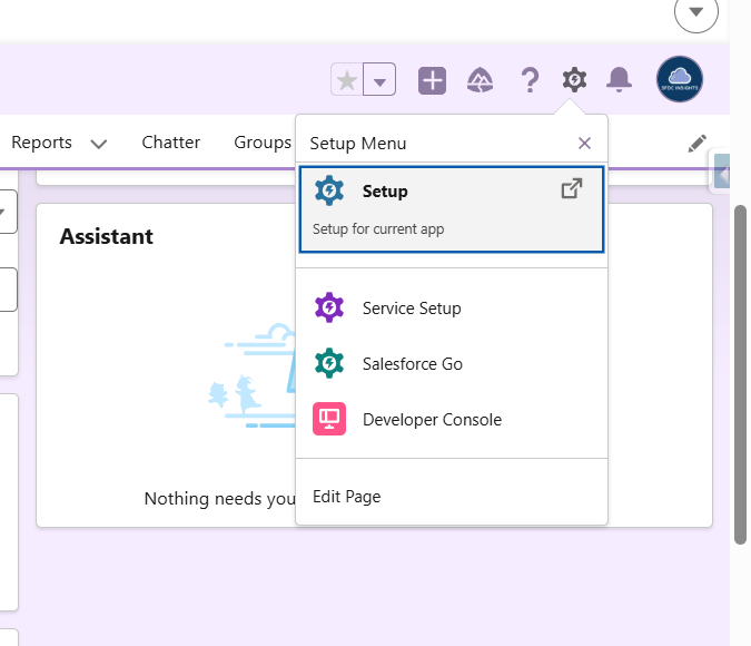 - Click on the Setup icon (gear icon) in the top right corner.